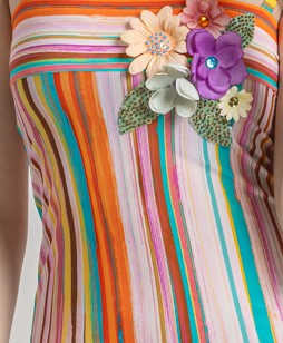 Мини щампирана рокля с презрамки, декорирана с 3D цветя и пайети. Изработена от ликра. 80% полиестер, 20% еластан